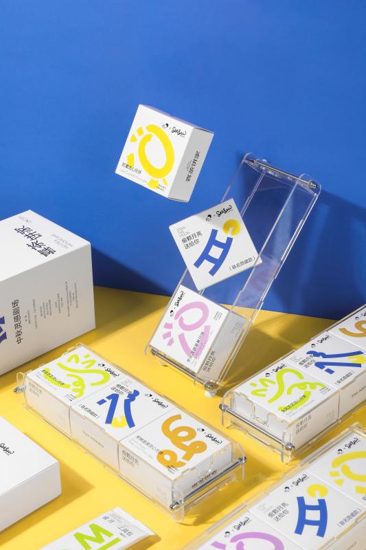 作為和Seesaw聯(lián)名的禮盒,為了增加互動(dòng)感和cp感,喜茶將“偷顆月亮送給你”的主題在外包裝設(shè)計(jì)上加以延展,設(shè)定了“互偷月亮”的概念,將靈感注入外包裝設(shè)計(jì)中以圖形上的方圓結(jié)合、顏色上的簡(jiǎn)約和諧,以及喜茶和Seesaw特有元素的交相呼應(yīng),為消費(fèi)者帶來(lái)兼具互動(dòng)性、包容性的視覺(jué)體驗(yàn)。方圓的簡(jiǎn)約圖形結(jié)合馬克筆筆跡式的設(shè)計(jì)元素,給人以想象空間。同時(shí),結(jié)合代表“夜晚”的“藍(lán)色”和代表“月亮”的“黃色”這兩種顏色系統(tǒng)的運(yùn)用,進(jìn)一步對(duì)主題加以呈現(xiàn)。禮盒整體上則突破傳統(tǒng)的橫放型禮盒式樣,采用直立型包裝,令人耳目一新。每一處設(shè)計(jì),都延續(xù)了喜茶靈感。