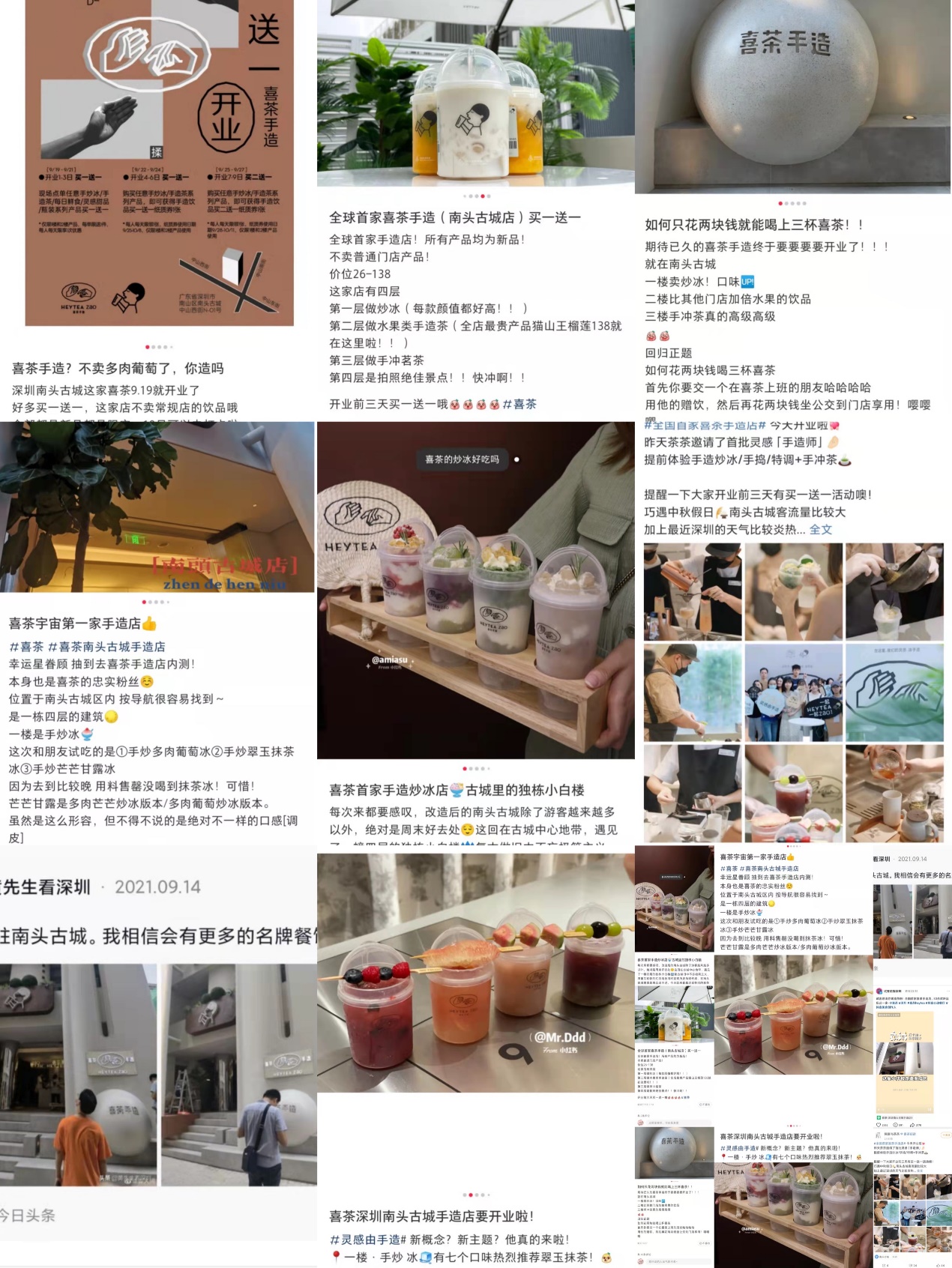 雖然才是正式營業(yè)的第一天,但喜茶南頭古城店憑借多款手造新品,以及傳統(tǒng)與現(xiàn)代結(jié)合的靈感空間設計,迅速聚攏了超強人氣。在社交媒體平臺上,“打卡喜茶手造店”“喜茶手造店初體驗”“喜茶手造飲品測評”的話題也頻頻出現(xiàn)。
