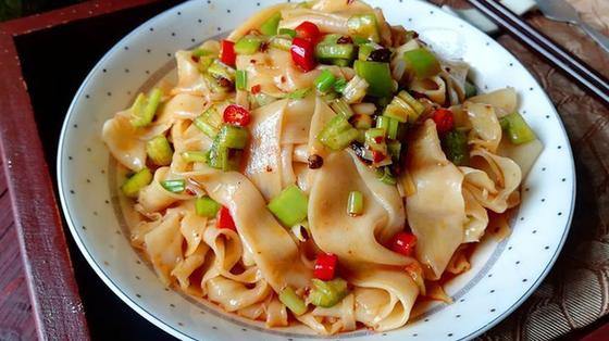教你用餃子皮,做出一碗香噴噴的油潑面,包餃子剩下餃子皮不愁了 包餃子剩下餃子皮是件挺煩心的事,再調(diào)餡太麻煩,扔了又可惜,浪費(fèi)糧食。