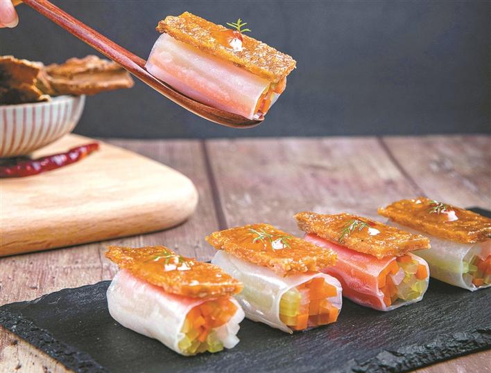 “小滿(mǎn)之日苦菜秀。”可以做一道婆婆丁腐皮卷,酸甜苦辣咸五味雜陳。