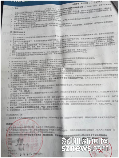 合同上標(biāo)明著“超過(guò)10天將不予辦理任何理由的退學(xué)申請(qǐng)”