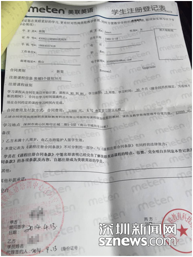 《課程注冊合同條款》中注明:學(xué)員在該條款中簽名即表明已經(jīng)完全了解美聯(lián)英語課程的特點(diǎn)、收費(fèi)