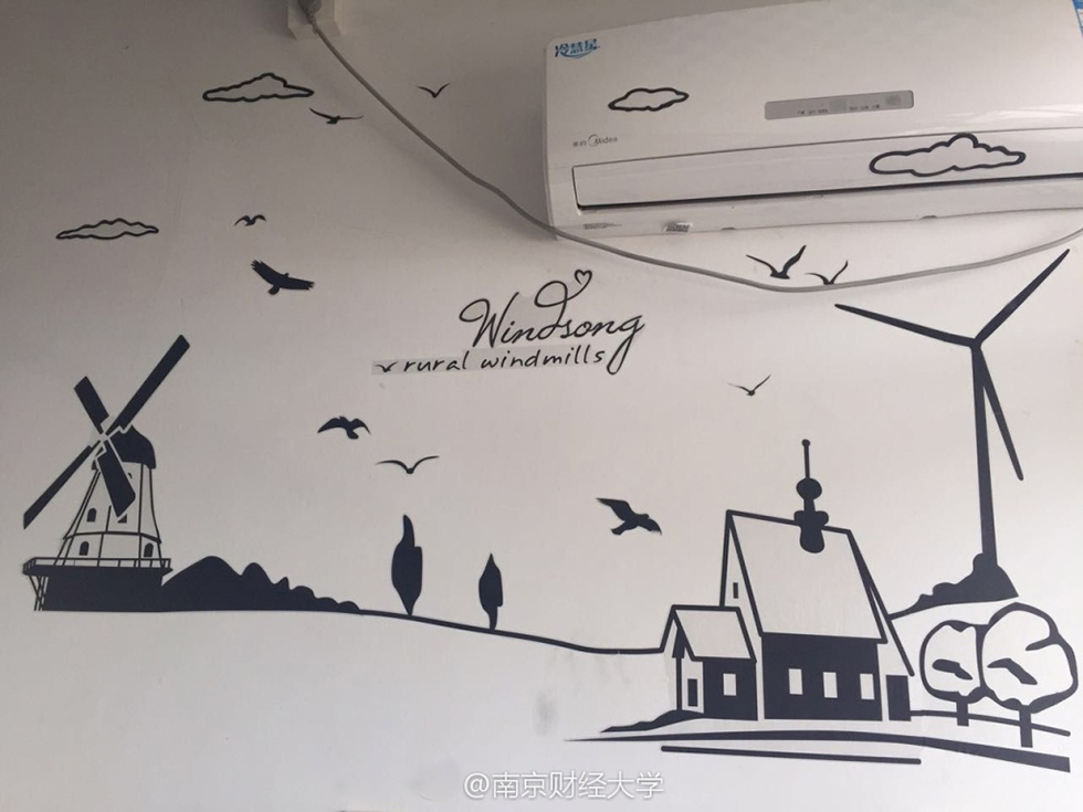 綿綿的草坪、充滿設(shè)計感的書架、掛著素描畫的墻……難以想象這是四個19歲男生的寢室。南京財經(jīng)大學西苑9幢男生宿舍頂樓602寢室,住著4位“世外高人”—— 涂貴平、柯毅、劉以康和廉鎮(zhèn)宇,他們用事實告訴大家,男生宿舍文藝起來,可絲毫不輸女生。