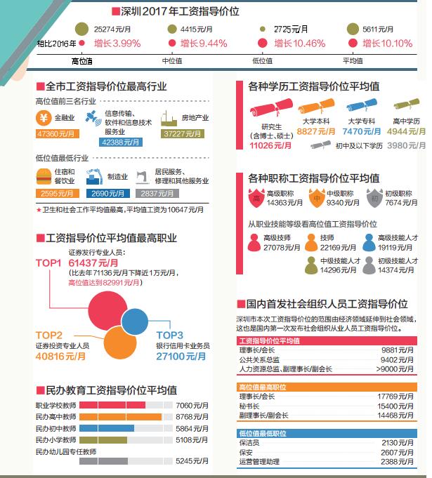 深圳哪些行業(yè)最有“錢途”?哪個職業(yè)最吸金?9月18日,由深圳市人社局發(fā)布的《2017年深圳市人力資源市場工資指導(dǎo)價位》顯示,2017年,深圳工資指導(dǎo)價位平均值為5611元/月,比去年上漲10.10%。在508個職業(yè)中,證券發(fā)行專業(yè)人員依然最吸金,工資指導(dǎo)價位平均值為61437元/月。此外,深圳今年還首次發(fā)布社會組織從業(yè)人員工資指導(dǎo)價位。