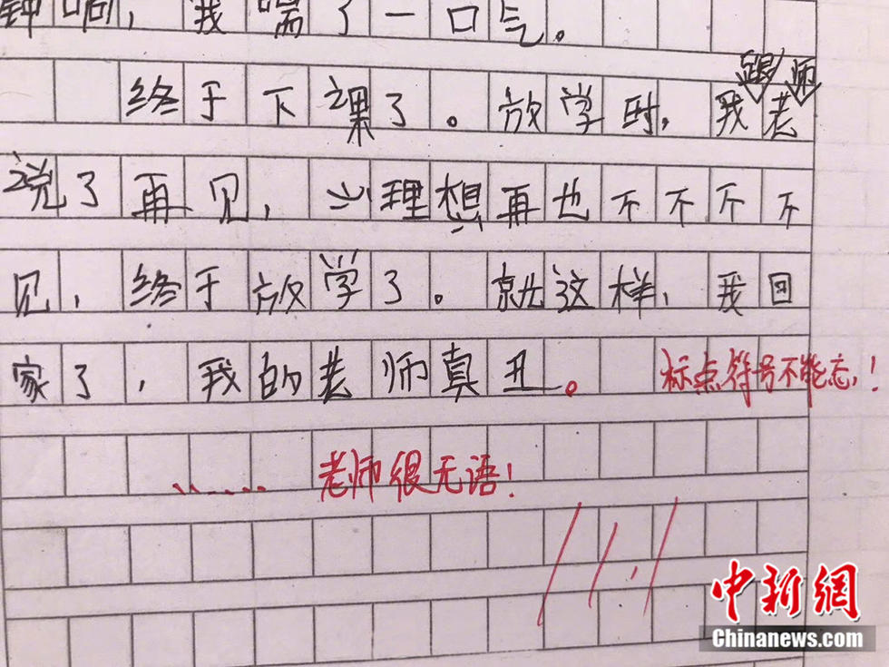 小學(xué)生作業(yè)留言笑哭老師 老師的評論也亮了