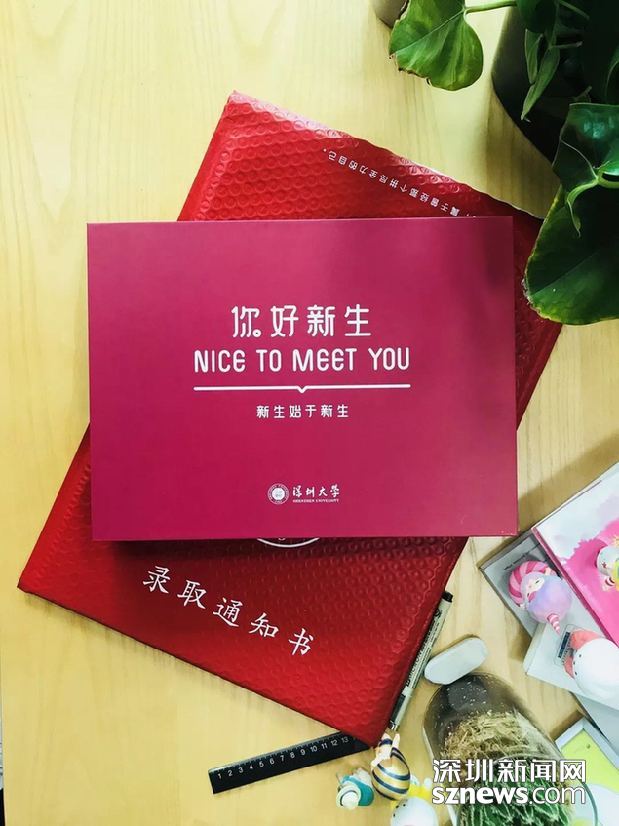 從一張紙到一個(gè)盒子,深圳大學(xué)的錄取通知書從來不按套路出牌,深大是全國第一個(gè)創(chuàng)新使用盒裝錄取通知書的大學(xué)。今年深大盒子3.0會(huì)有什么?除了必須有的錄取通知書、校園卡、地圖、一系列的報(bào)到入學(xué)資料和表格,還會(huì)有一些小禮物。從官方發(fā)布的圖片看來,今年的盒子是純紅色的封面,上面寫著“你好,新生 NICE TO MEET YOU”。