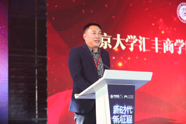 新生代表PE157班郭彥偉發(fā)言時和現(xiàn)場的同學(xué)們分享了兩點感受,他說他進(jìn)入北大匯豐商學(xué)院感受到了光榮和夢想,“我們要有使命感和責(zé)任感,因為我們不僅是學(xué)員,還代表著企業(yè)家,所以我們不僅要學(xué)習(xí)北大的精神,更要承擔(dān)歷史責(zé)任。”