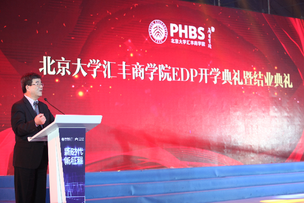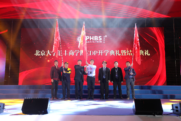 隨后,PE157班、PE163班、PE166班新班代表從北京大學(xué)匯豐商學(xué)院海聞院長手中接過班旗,這是北大匯豐的傳統(tǒng)儀式,它代表著新舊傳承。