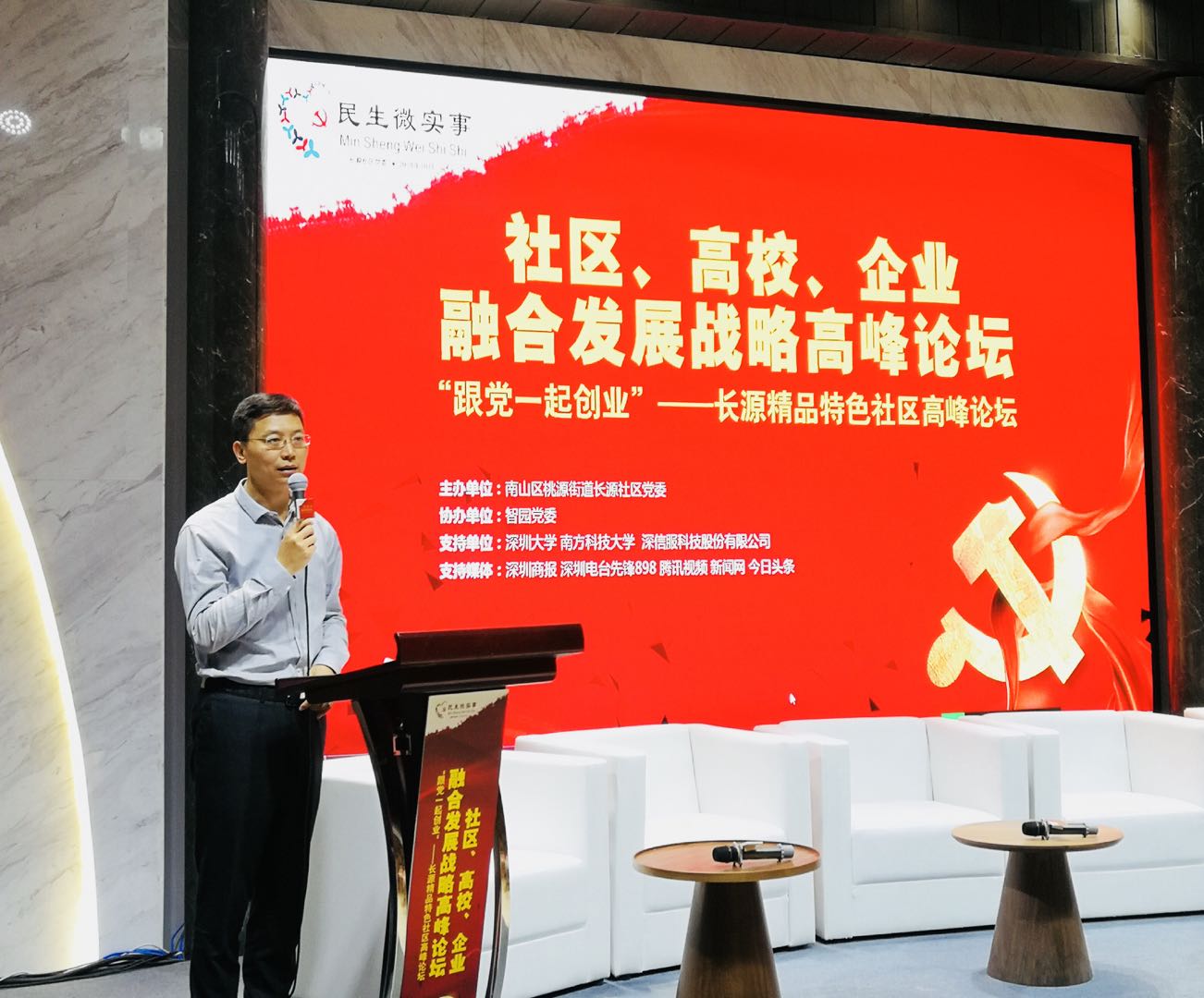 深圳新聞網(wǎng)訊10月30日,社區(qū)、高校、企業(yè)融合發(fā)展戰(zhàn)略高峰論壇在深圳市南山區(qū)智園 B1棟黨群服務(wù)中心大樓舉行,論壇由南山區(qū)桃源街道長(zhǎng)源社區(qū)黨委主辦。本次論壇以“社區(qū)、高校、企業(yè)融合發(fā)展戰(zhàn)略”為主題,匯聚了來(lái)自社區(qū)、高校、企業(yè)的相關(guān)知名人士,共同探討融合發(fā)展策略,打造長(zhǎng)源精品特色社區(qū)。桃源街道黨工委書(shū)記黃健,知名社會(huì)學(xué)家、深圳大學(xué)教授易松國(guó),深信服科技股份有限公司黨委書(shū)記林彥,南方科技大學(xué)致誠(chéng)書(shū)院副院長(zhǎng)藍(lán)海等出席了論壇。