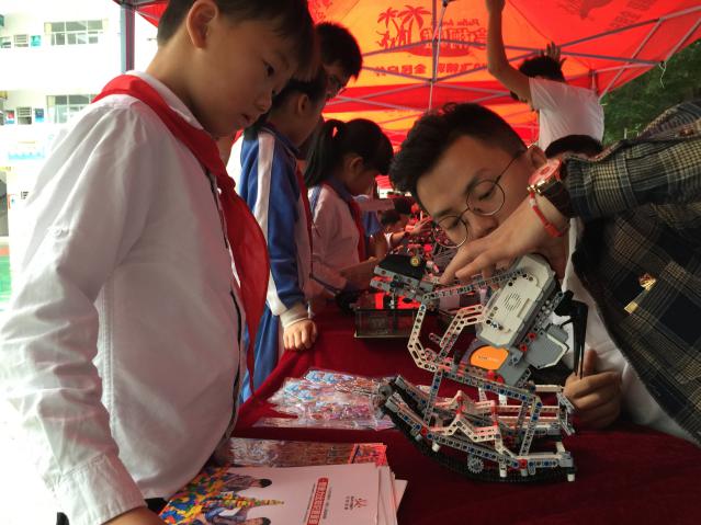 同期,愛匯百變教育科技有限公司也給同學(xué)帶來了炫酷多彩的編程大餐。通過對EV3編程機(jī)器人項(xiàng)目LEGO方針機(jī)械機(jī)構(gòu)以及LEGO圖形化編程展示,邀請現(xiàn)場同學(xué)進(jìn)行對套件進(jìn)行組裝、編程控制,普及編程和電磁感應(yīng)現(xiàn)象、電動(dòng)基本原理、電路等物理知識,鍛煉學(xué)生科學(xué)創(chuàng)造思維,培養(yǎng)學(xué)科興趣。