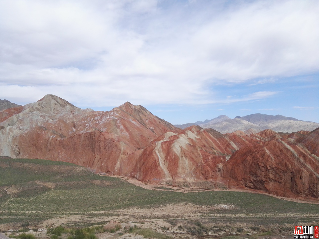 丹霞地貌和雅丹地貌這兩個(gè)這么“地理學(xué)術(shù)”的名詞,讓我倒吸了一口冷氣,雖是高考選地理的人,但自然地理的各種成因和分布著實(shí)讓我抓狂。簡(jiǎn)單來(lái)說(shuō),丹霞地貌是由流水侵蝕而成的,而雅丹地貌則是典型的風(fēng)蝕性地貌。從外觀上來(lái)看,丹霞是廣袤大地上狂奔的色彩。古有“色若渥丹,燦如明霞”,精確地點(diǎn)明了彩丘在明媚日光下的絢爛赤紅、杏黃等奇異明亮的色彩。待到陽(yáng)光爬上山頭,蔚藍(lán)漸漸暈開(kāi),才能看到“紅色混雜著灰、白、綠、橙、黃等多種顏色,如同一條彩帶溶解在了起伏不定的地面上”。這時(shí)的張掖名副其實(shí)的七彩丹霞才會(huì)有宣傳照上的光彩奪目。