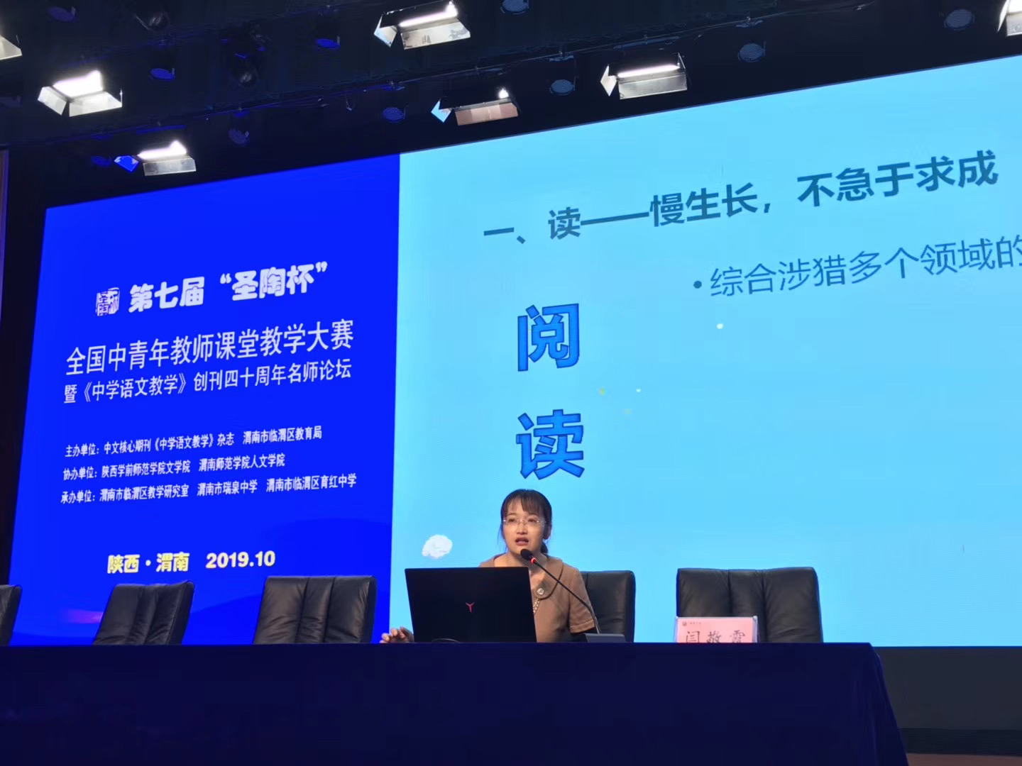 見圳客戶端·深圳新聞網(wǎng)2019年10月31日訊 日前,第七屆“圣陶杯”全國中青年教師語文課堂教學(xué)大賽暨《中學(xué)語文教學(xué)》創(chuàng)刊四十周年名師論壇在陜西渭南舉行,深圳市南山區(qū)中國科學(xué)院深圳先進(jìn)技術(shù)研究院實(shí)驗(yàn)學(xué)校閆敬霞老師受邀出席“名師論壇”,并做主題分享。