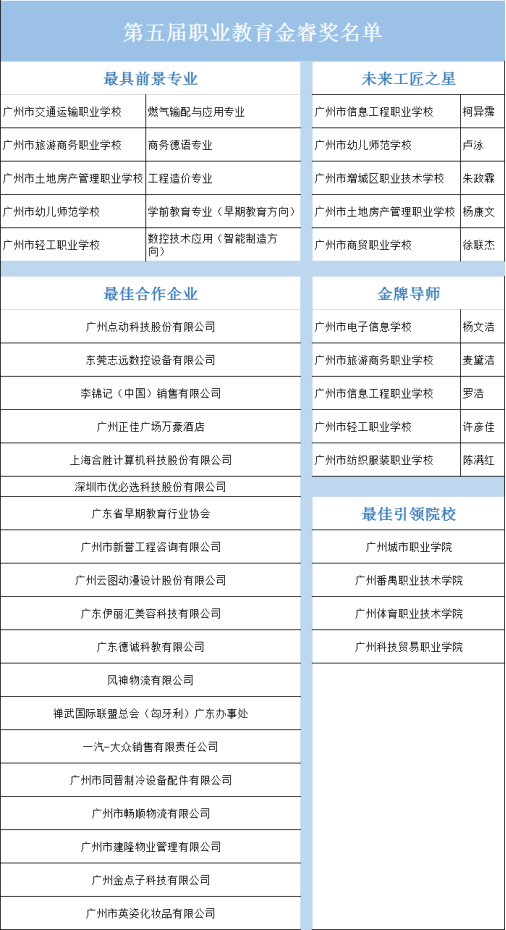 注:“第五屆職業(yè)教育金睿獎(jiǎng)”名單由線上點(diǎn)贊數(shù)據(jù)統(tǒng)計(jì)及線下專家評(píng)審團(tuán)相關(guān)綜合評(píng)定意見(jiàn)得出。