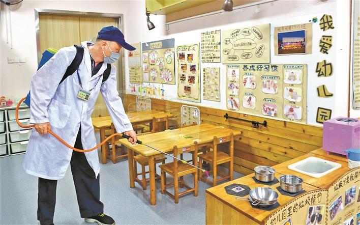 為做好開園準(zhǔn)備,前日,南山區(qū)教育幼兒園聘請專業(yè)消殺公司對園區(qū)進(jìn)行消殺。深圳特區(qū)報(bào)記者周紅聲攝