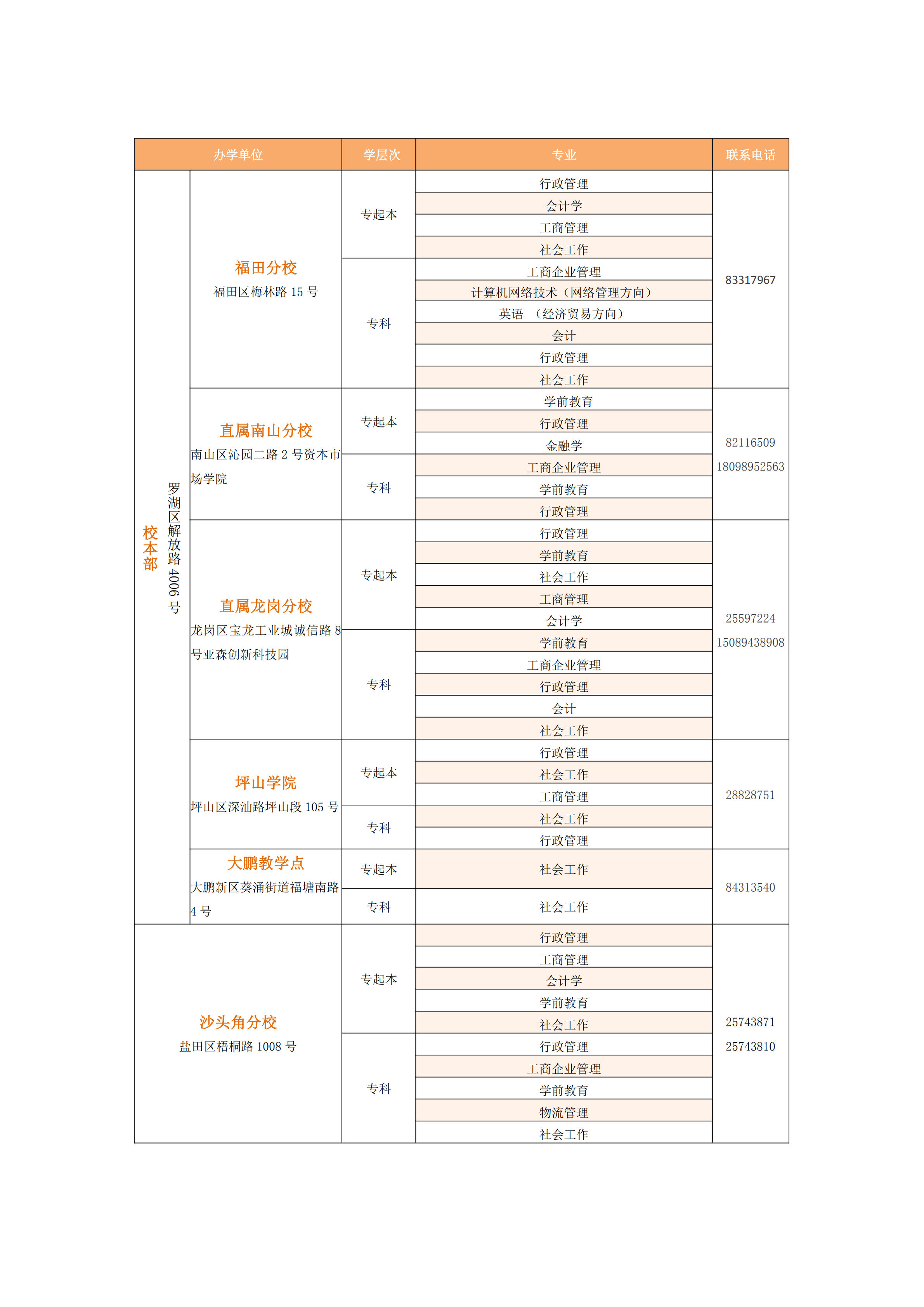特別聲明:深圳廣播電視大學(xué)【國家開放大學(xué)(深圳)】是唯一在深圳地區(qū)招收開放教育??破瘘c(diǎn)本科、??茖W(xué)生的公辦高校。除學(xué)校公示的教學(xué)點(diǎn)外,其它任何以國家開放大學(xué)或廣播電視大學(xué)名義在深圳市范圍內(nèi)招生的機(jī)構(gòu)和個(gè)人均屬違規(guī)招生,報(bào)讀者謹(jǐn)防受騙。監(jiān)督電話:0755-82116067。
