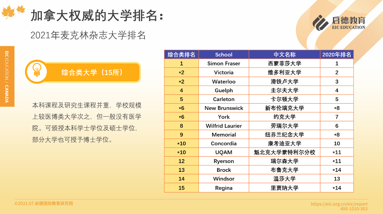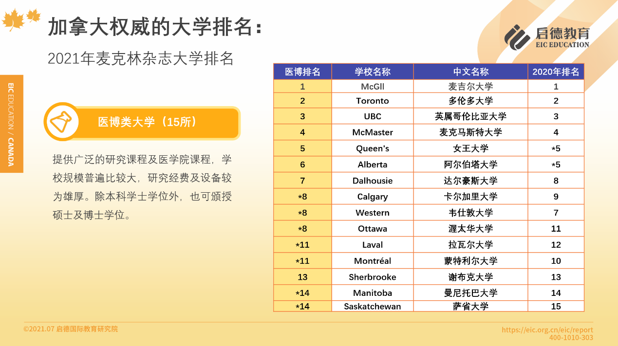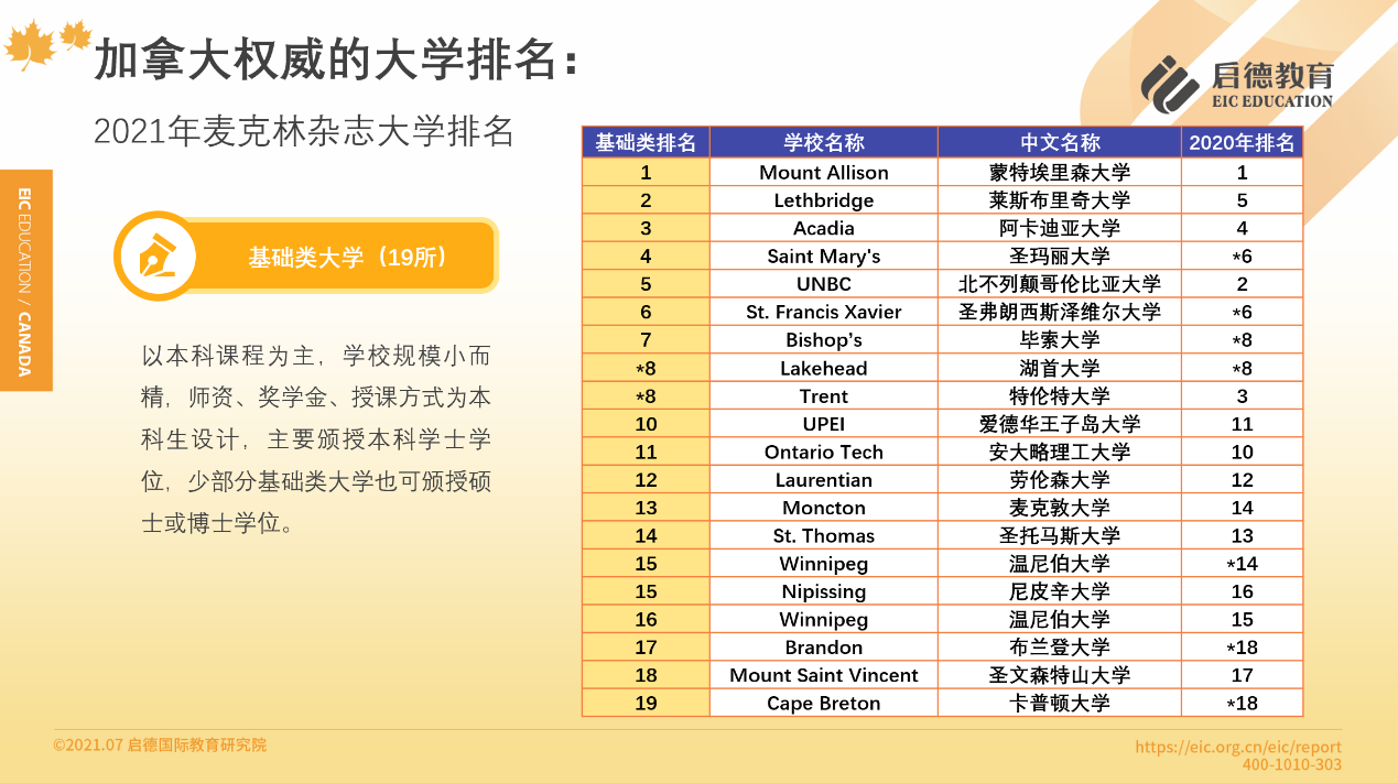 加拿大高校以公立為主,各具特色與優(yōu)勢,教育質(zhì)量在官方評價體系中并沒有顯著區(qū)別,因此,啟德教育建議,在選擇院校時,除了參考麥克林雜志排名,還應(yīng)該通過院校官網(wǎng)或者留學顧問,更全面地了解加拿大高校的實力。麥克林排名根據(jù)加拿大大學的類型,分為醫(yī)博類、綜合類、基礎(chǔ)類三個排名,值得一提的是,連續(xù)21年位于基礎(chǔ)類大學排名榜首的蒙特艾莉森大學,是加拿大本科畢業(yè)生中獲得羅德獎學金人數(shù)最多的學校,羅德獎學金又被稱為“全球本科生諾貝爾獎”。此外,基礎(chǔ)類排名第19的卡普頓大學,在最近一期的Analytics Insight雜志中,與美國麻省理工學院、英國華威大學等一同入選了2021年10家最著名的分析和數(shù)據(jù)科學機構(gòu)。