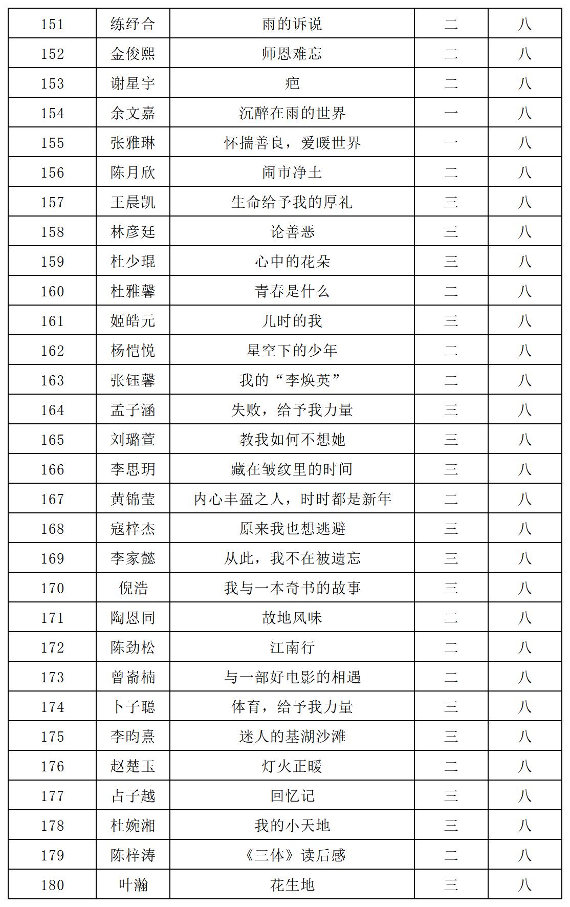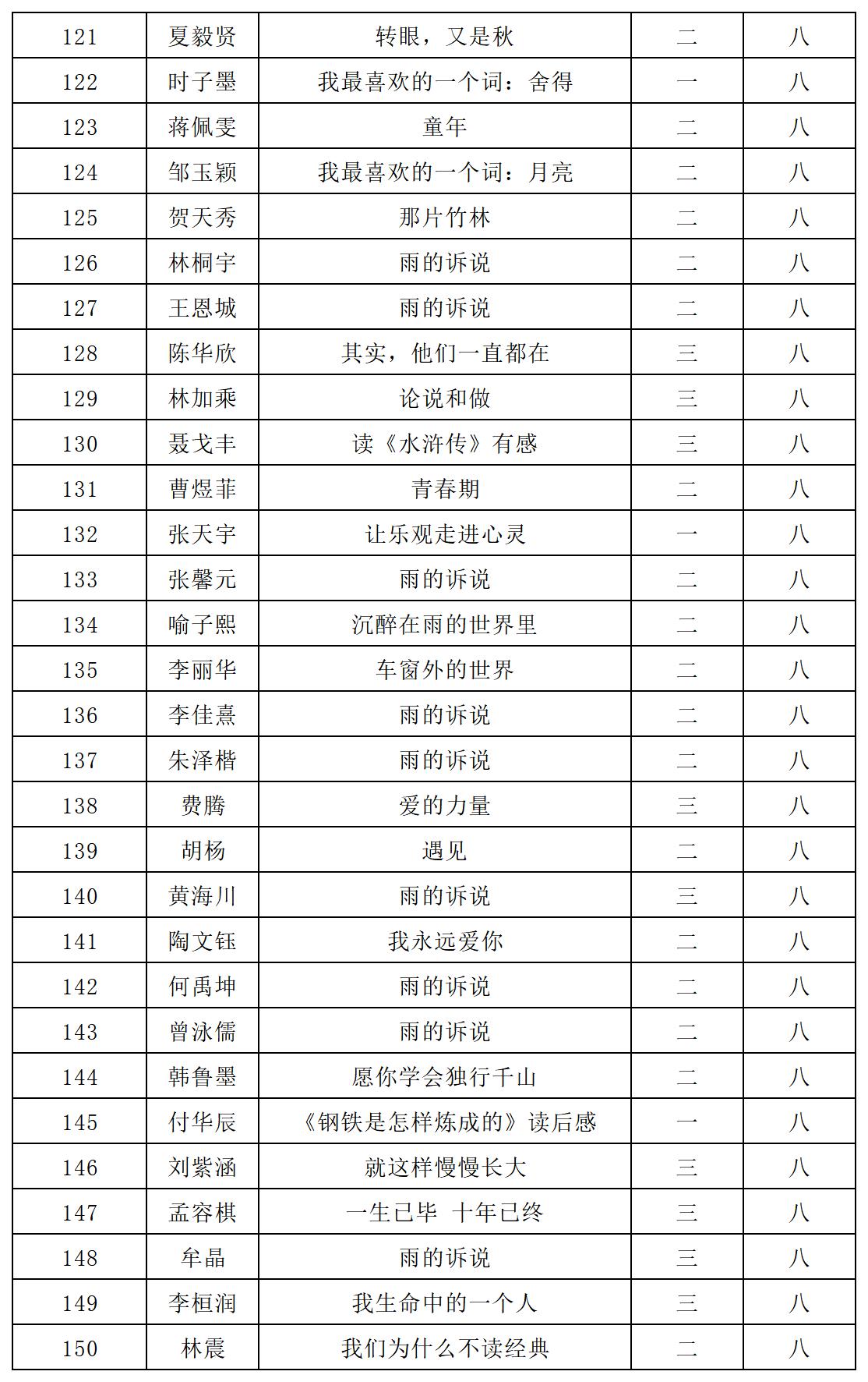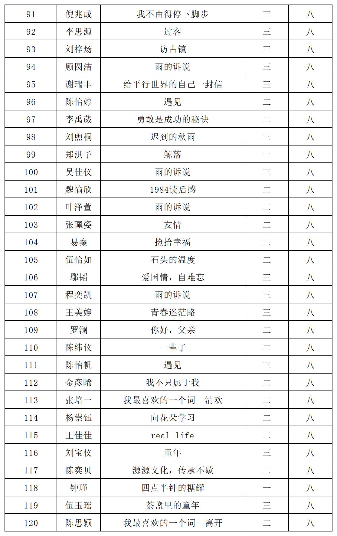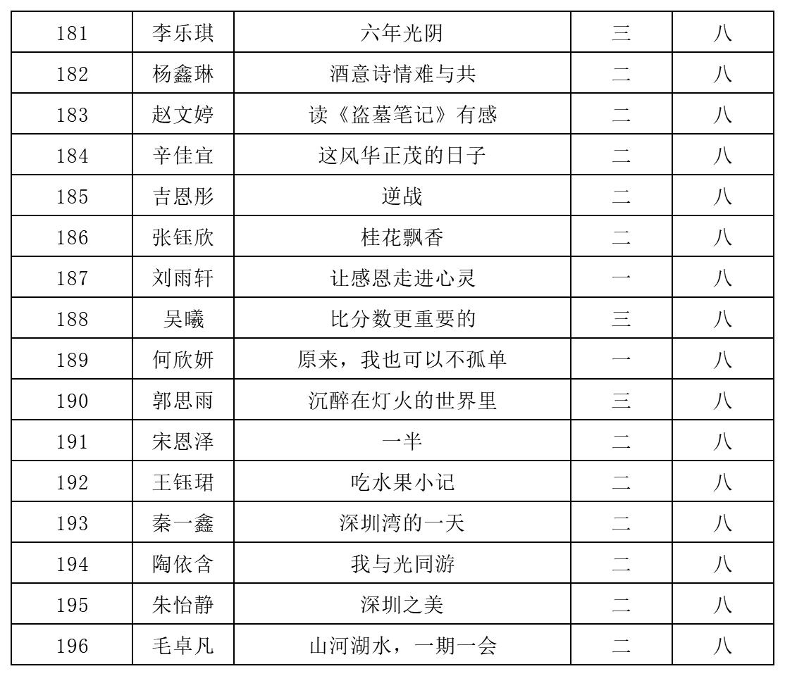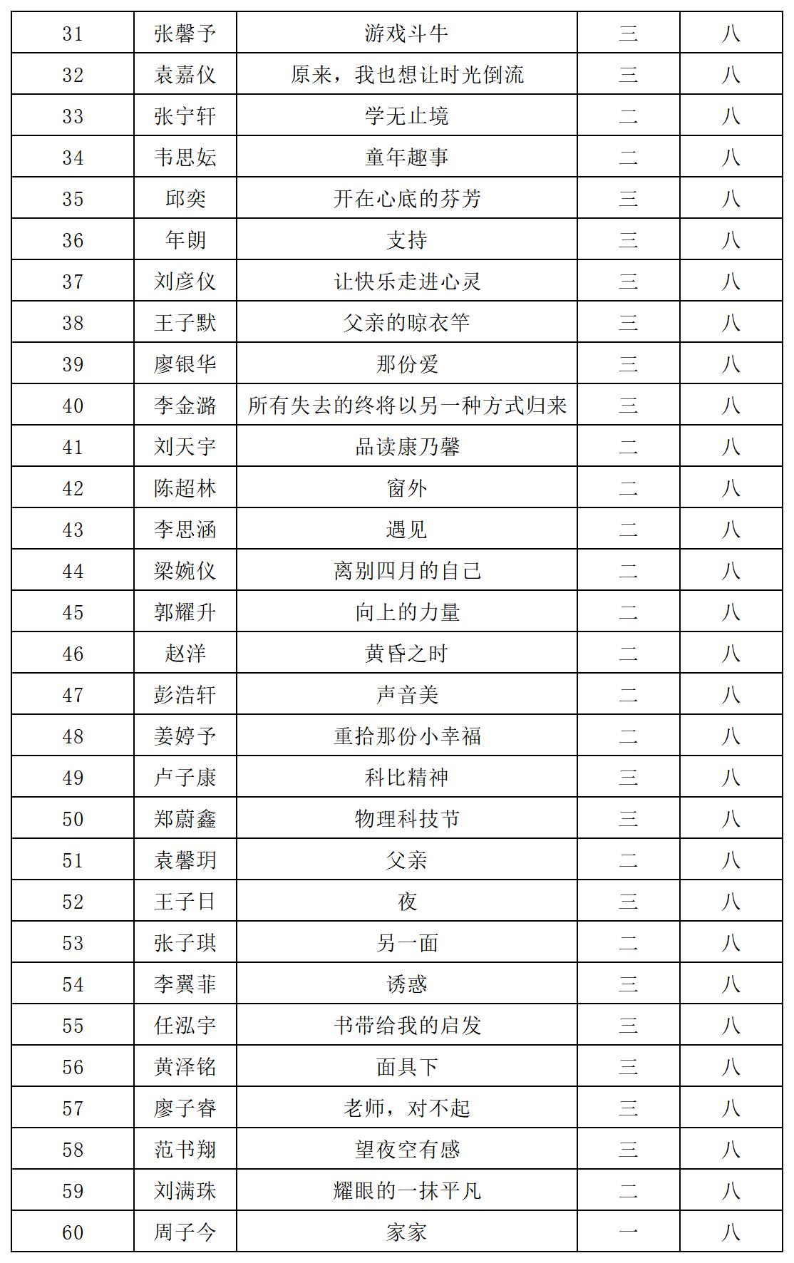 自2021年1月,活動(dòng)征稿啟動(dòng)以來,獲得了深圳市廣大中小學(xué)生、教師、文學(xué)愛好者的熱烈響應(yīng)積極參與,吸引了深圳百余所學(xué)校的上萬人關(guān)注報(bào)名?,F(xiàn)公布北師大南山附屬學(xué)校中學(xué)部晉級復(fù)賽名單如下: