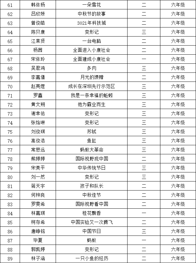自2021年1月,活動征稿啟動以來,獲得了深圳市廣大中小學(xué)生、教師、文學(xué)愛好者的熱烈響應(yīng)積極參與,吸引了深圳百余所學(xué)校的上萬人關(guān)注報(bào)名?,F(xiàn)公布龍華區(qū)丹堤實(shí)驗(yàn)學(xué)校晉級復(fù)賽名單如下: