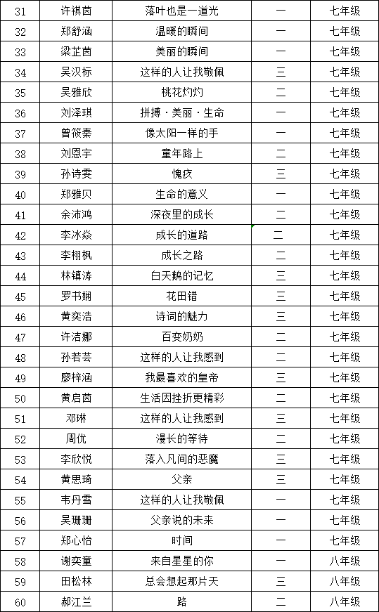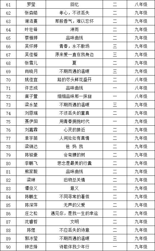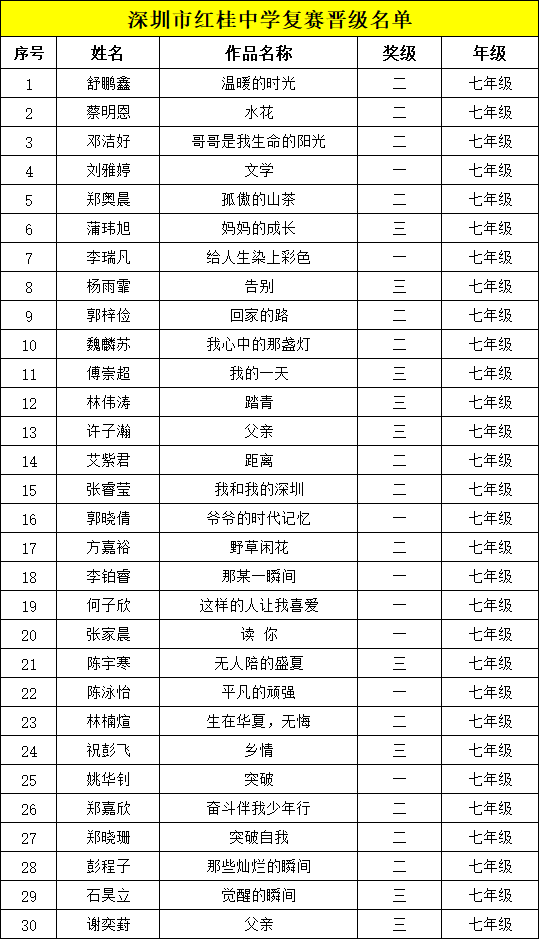 自2021年1月,活動(dòng)征稿啟動(dòng)以來(lái),獲得了深圳市廣大中小學(xué)生、教師、文學(xué)愛好者的熱烈響應(yīng)積極參與,吸引了深圳百余所學(xué)校的上萬(wàn)人關(guān)注報(bào)名?,F(xiàn)公布深圳市紅桂中學(xué)晉級(jí)復(fù)賽名單如下: