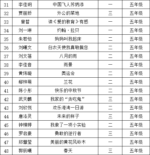 自2021年1月,活動(dòng)征稿啟動(dòng)以來(lái),獲得了深圳市廣大中小學(xué)生、教師、文學(xué)愛好者的熱烈響應(yīng)積極參與,吸引了深圳百余所學(xué)校的上萬(wàn)人關(guān)注報(bào)名。現(xiàn)公布南山區(qū)荔香學(xué)校晉級(jí)復(fù)賽名單如下: