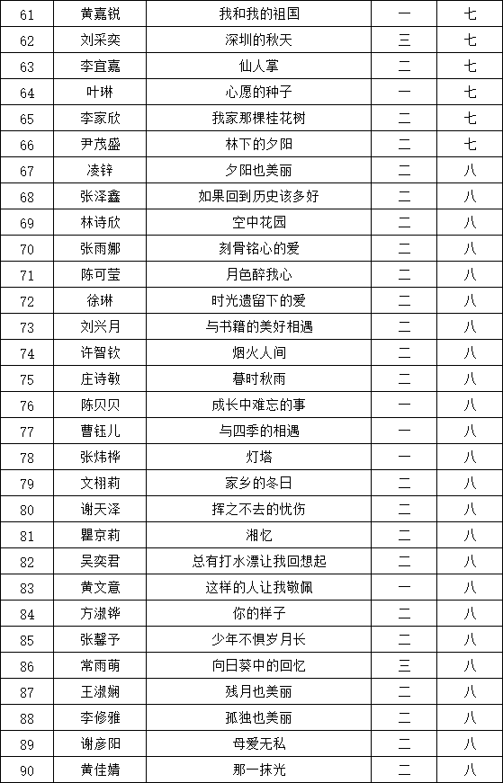 自2021年1月,活動(dòng)征稿啟動(dòng)以來,獲得了深圳市廣大中小學(xué)生、教師、文學(xué)愛好者的熱烈響應(yīng)積極參與,吸引了深圳百余所學(xué)校的上萬人關(guān)注報(bào)名?,F(xiàn)公布南二外(集團(tuán))赤灣學(xué)校晉級(jí)復(fù)賽名單如下: