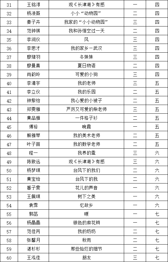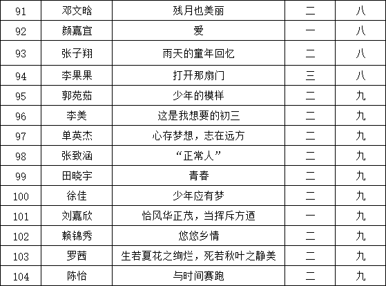 晉級(jí)文友無需再次準(zhǔn)備作品,每一屆一位學(xué)生一篇作品投稿參賽,以實(shí)際創(chuàng)作作品品質(zhì)為審評(píng)基礎(chǔ)依據(jù):海選初評(píng)晉級(jí)復(fù)評(píng)入選比例控制在10%以內(nèi),晉級(jí)復(fù)賽的作品作者無需準(zhǔn)備第二次創(chuàng)作,在同一年級(jí)統(tǒng)一復(fù)賽池內(nèi)競(jìng)選審評(píng)出更出色作品進(jìn)入總決賽。代表當(dāng)年度文學(xué)創(chuàng)作水平的發(fā)展見證。