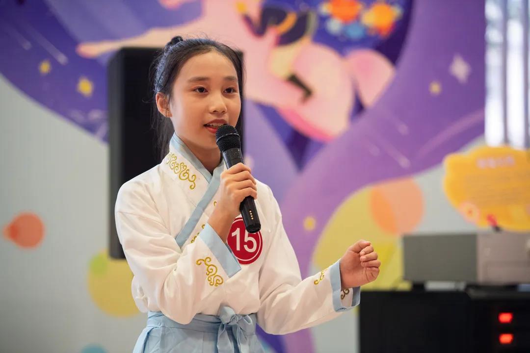 在甘坑社區(qū)廣場(chǎng),現(xiàn)場(chǎng)早早搭起了舞臺(tái),來(lái)自甘李學(xué)校的17名優(yōu)秀古詩(shī)詞愛(ài)好者躊躇滿志、躍躍欲試,甘坑社區(qū)黨委副書記魏阿妮親自擔(dān)任活動(dòng)主持人,選手們輪番上場(chǎng),為評(píng)委及社區(qū)居民呈現(xiàn)了一場(chǎng)精彩的文化活動(dòng)。