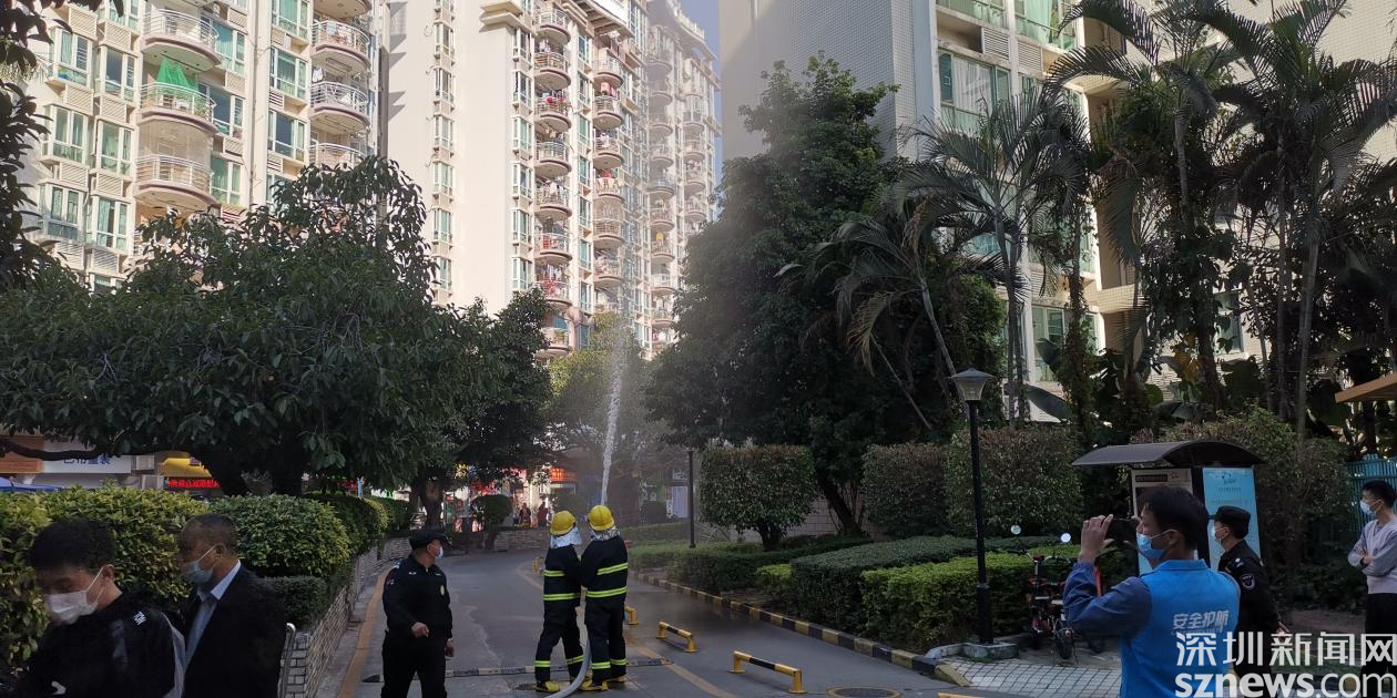 演練情景設定為巡查人員發(fā)現(xiàn)火情,第一時間向社區(qū)安全相關負責人匯報,安保處立刻報警并啟動消防應急預案。隨后火警警報驟響,樓道內(nèi)冒出濃煙,疏散演練正式開始。居民們在工作人員的指揮下,用口罩、衣服等捂口鼻,屈膝彎腰沿著既定的疏散路線,迅速向安全區(qū)域撤離。隨后社區(qū)消防員趕赴現(xiàn)場,使用高壓水槍撲滅火災,解除警報。演練結(jié)束后,社區(qū)還組織居民參加安全體驗活動。