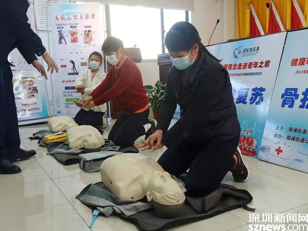 據(jù)了解,觀瀾街道有多家老年人之家、長者服務(wù)中心,為積極應(yīng)對人口老齡化,滿足轄區(qū)老年人對居家急救、居家健康知識的迫切需求,街道積極開展老年醫(yī)療保健和居家急救活動,如心肺復(fù)蘇急救體驗學(xué)習、骨折包扎體驗學(xué)習、防異物梗塞體驗學(xué)習等,使老年人充分了解到生活中一些突發(fā)事件的應(yīng)對方法,在保護自己的同時也能夠幫助到他人,為實現(xiàn)居民應(yīng)對“突發(fā)疾病”的自救奠定良好基礎(chǔ)。