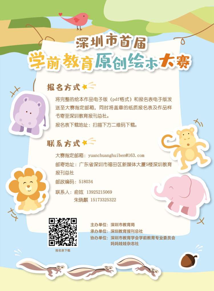 原創(chuàng)繪本大賽的參賽對象為全市幼兒園教師、在園幼兒及其家長,每所幼兒園的參賽作品數(shù)量沒有限制。有意參賽的選手可掃碼獲取報名表并了解詳細(xì)要求。作品征集時間為2022年1月10日-2月28日,3月為初評與終評階段,擬于3月底公布評審結(jié)果并舉行頒獎儀式。
