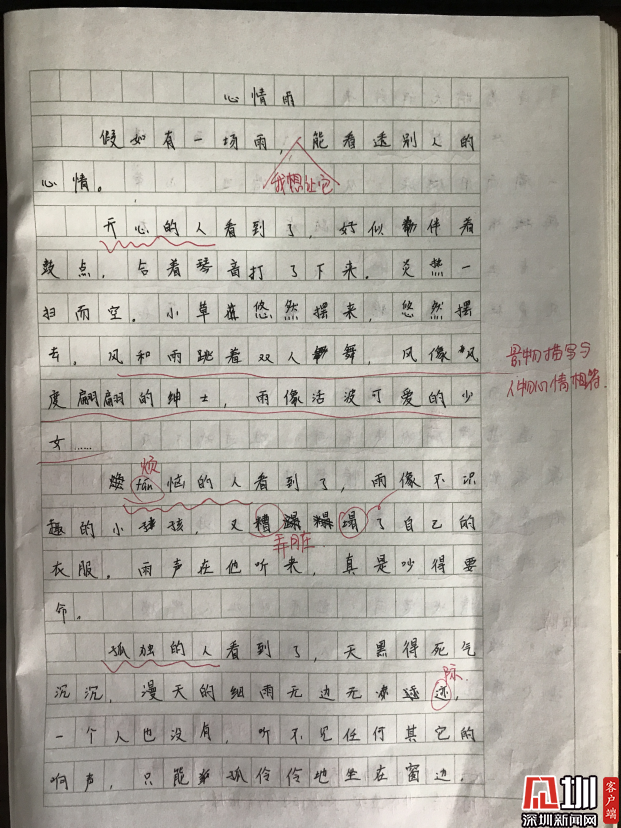 假如有一場雨,我想讓它能看透別人的心情。 開心的人看到了,好似伴著鼓點,合著琴音打了下來。