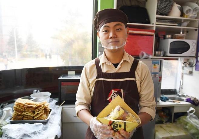 今年29歲的林曉旭是吉林大學畢業(yè)生,幾個月前,他辭去了知名國企的工作,回到母校開起了一家煎餅店做起“煎餅俠”,受到學生們的歡迎。