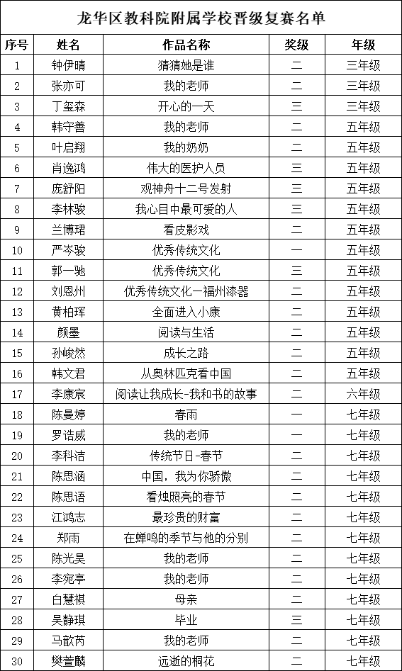 冰心文學(xué)盛典 | 龍華區(qū)教科院附屬學(xué)校晉級(jí)復(fù)賽名單公布