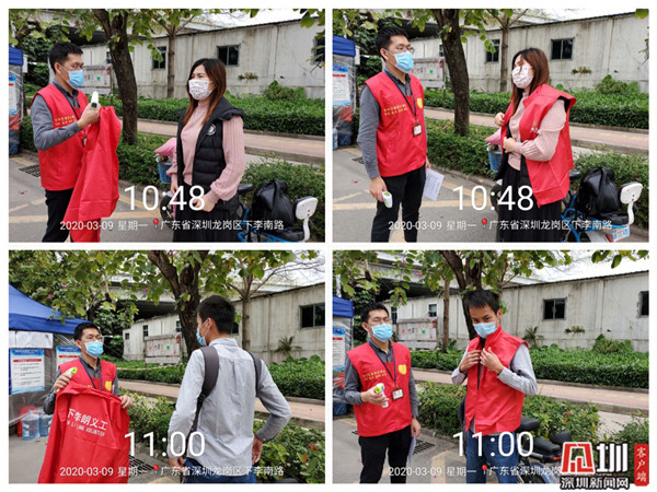 在社區(qū)工作人員的指導(dǎo)下,這位男子穿上“紅馬甲”,手拿體溫槍,立即投入到了防疫義工服務(wù)中。為進(jìn)出人員測量體溫、登記等,這位男子“不漏一車一人”,義工服務(wù)做得十分認(rèn)真。半小時(shí)志愿服務(wù)后,該男子意識(shí)到自己不戴頭盔的錯(cuò)誤行為,并表示以后會(huì)注意,“這是一次很特別的‘教訓(xùn)’,以后我肯定會(huì)記住戴頭盔的!”