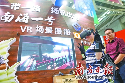 游客體驗(yàn)“南海一號”VR場景漫游(南方日報(bào)記者 魯力 攝)