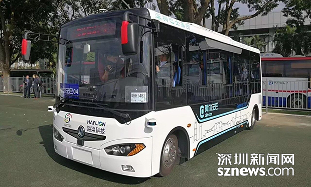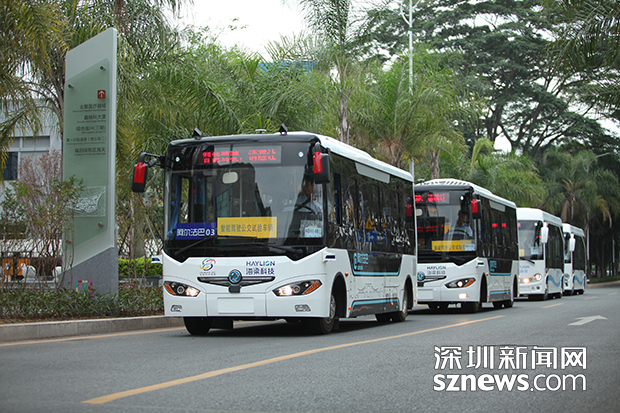 此次在福田保稅區(qū)首發(fā)的智能公交共4臺,皆為白色車身