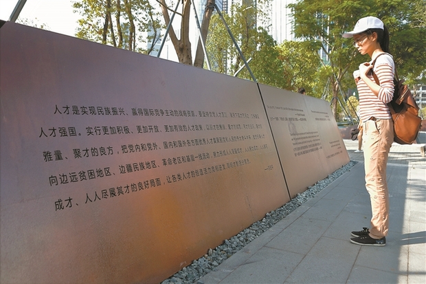“創(chuàng)新驅(qū)動(dòng)實(shí)質(zhì)上是人才驅(qū)動(dòng)”——深圳人才公園的草坪上,鐫刻在一塊石碑上的話語在陽光下熠熠生輝。這,是習(xí)近平總書記就人才工作作出的重要論述。