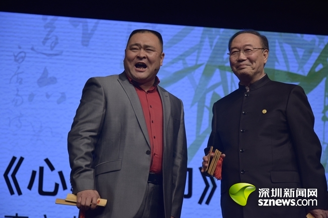 2017年,正值深圳市曲藝家協(xié)會十周年之際,吳金富攜弟子趙梓琳、張國平、張春玉以一段《學(xué)能耐》拉開了本場演出的序幕,三位弟子爭做大師兄,紛紛展現(xiàn)自己的獨門絕技,最后師父以一首《重整河山待后生》,唱出自己對深圳曲藝蓬勃發(fā)展,一代更比一代強(qiáng)的美好祝愿。