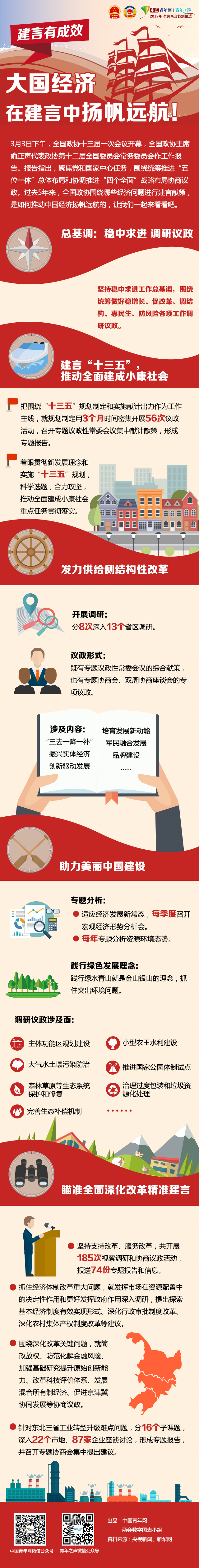 中國(guó)青年網(wǎng)北京3月4日電 3月3日下午,全國(guó)政協(xié)十三屆一次會(huì)議開幕,全國(guó)政協(xié)主席俞正聲代表政協(xié)第十二屆全國(guó)委員會(huì)常務(wù)委員會(huì)作工作報(bào)告。報(bào)告指出,聚焦黨和國(guó)家中心任務(wù),圍繞統(tǒng)籌推進(jìn)“五位一體”總體布局和協(xié)調(diào)推進(jìn)“四個(gè)全面”戰(zhàn)略布局協(xié)商議政。過去5年來,全國(guó)政協(xié)圍繞哪些經(jīng)濟(jì)問題進(jìn)行建言獻(xiàn)策,是如何推動(dòng)中國(guó)經(jīng)濟(jì)揚(yáng)帆遠(yuǎn)航的,讓我們一起來看看吧。