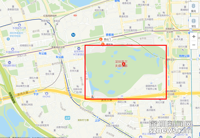 2015年10月16日,深圳新聞網(wǎng)無(wú)人機(jī)團(tuán)隊(duì)曾對(duì)此塊用地進(jìn)行了航拍。深圳高爾夫俱樂部球場(chǎng),深圳經(jīng)濟(jì)特區(qū)第一個(gè)高爾夫球場(chǎng),用地位于福田中心區(qū)深南大道與濱河大道之間,東鄰新洲路,西距香蜜湖路。有人認(rèn)為這座球場(chǎng)的存在,使得城市交通微循環(huán)被阻隔,但也因?yàn)檫@座球場(chǎng)的存在,深圳市中心得以保留一塊巨大的綠肺,沒有受到鋼筋水泥侵蝕。