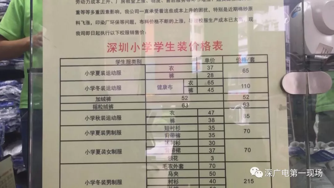 記者了解到,2011年,深圳校服曾進(jìn)行過(guò)調(diào)價(jià),當(dāng)時(shí)教育部門發(fā)布通告稱,由于廠家成本上升,校服價(jià)格統(tǒng)一調(diào)整,平均價(jià)格比之前高出14.02%。之后,這一價(jià)格標(biāo)準(zhǔn)一直沿用。