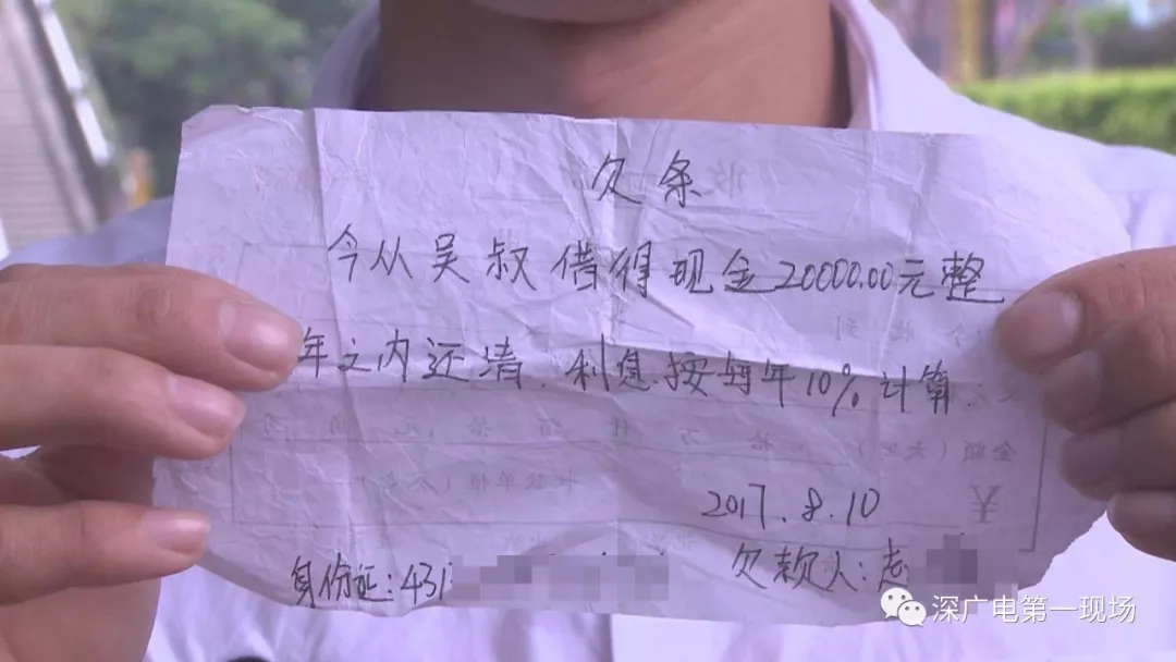 男子為了親叔叔一張借條跑來(lái)深圳 債主卻說(shuō)沒(méi)借過(guò)錢(qián)