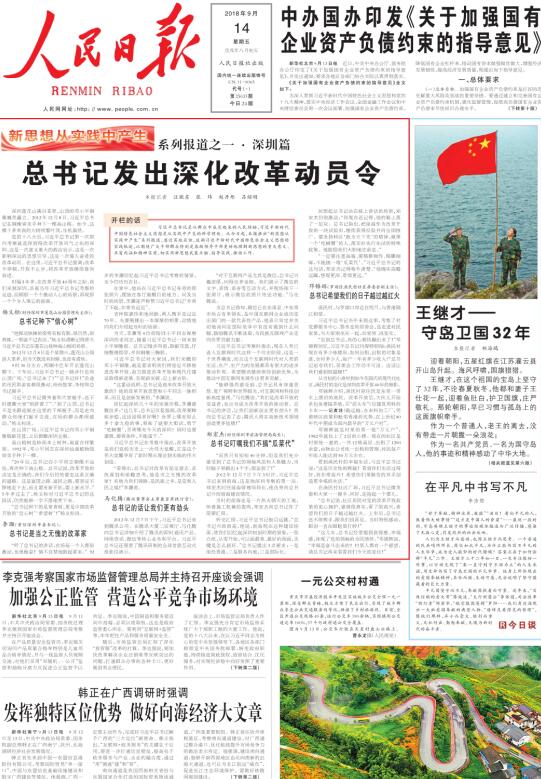 人民日報今起推出“新思想從實踐中產生”系列報道,通過實地采訪,追溯習近平新時代中國特色社會主義思想的實踐軌跡。系列報道開篇之作《總書記發(fā)出深化改革動員令》今天在頭版頭條隆重推出,全文轉載如下: