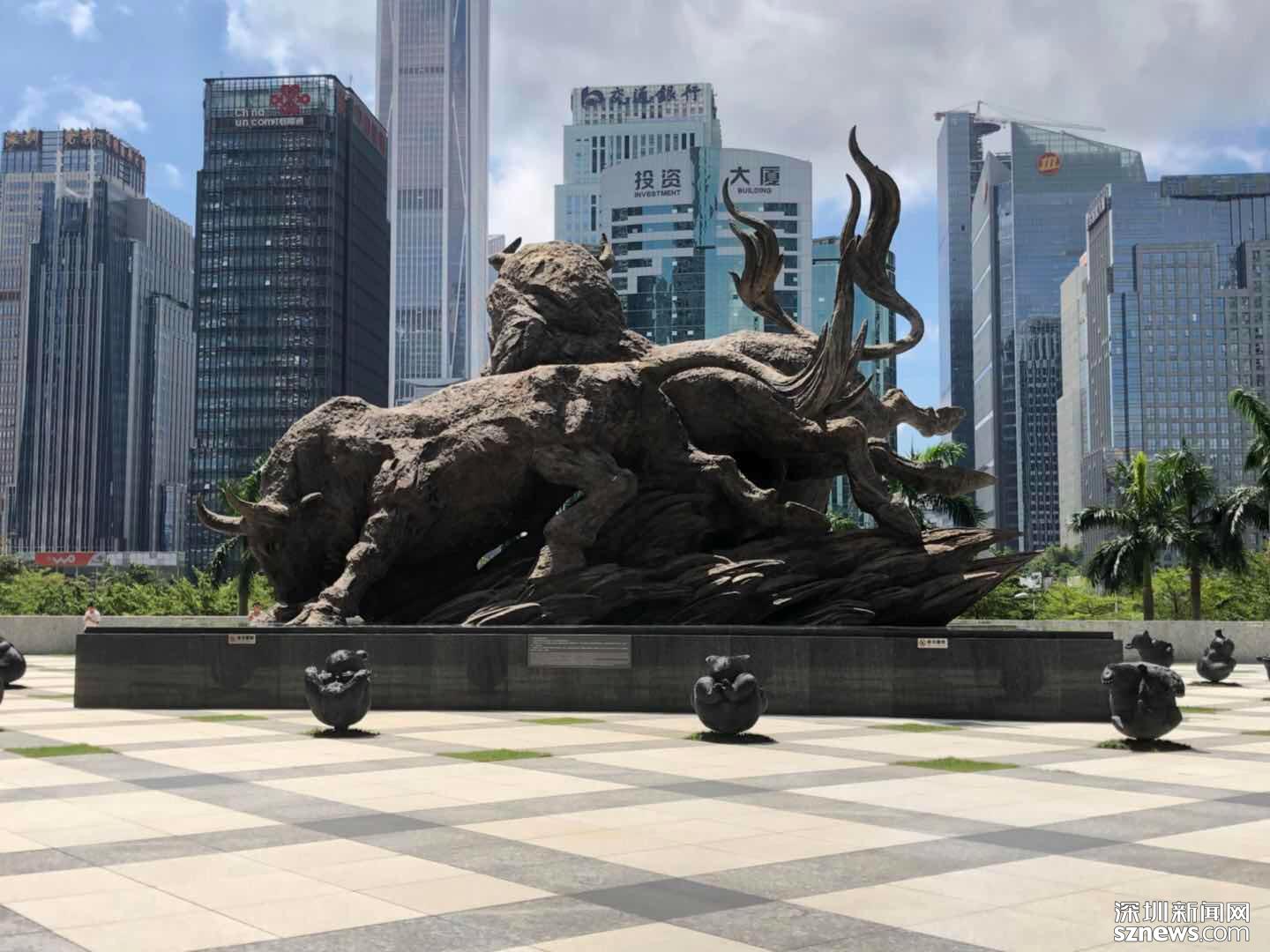 牛雕塑寓意深交所牛氣沖天。實(shí)際情況如何?18日中午記者趕往深交所,在廣場(chǎng)拍到了牛雕塑,一切如常。謠言不攻自破。