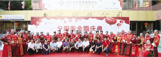 蛇口街道南水社區(qū)居民耿玉璽與王月鳳兩位老人已經攜手走過69年,一直有個遺憾藏在心里——兩人年輕時沒有舉辦過婚禮,連一張結婚照片都沒有。日前,二老的遺憾得到彌補,愿望得以實現(xiàn)。南水社區(qū)黨委以開展民生微實事為契機,為包括耿玉璽與王月鳳夫婦在內的社區(qū)15對老年夫婦舉辦了一場別開生面的夕陽美集體金婚慶典活動。眾多嘉賓及老人的親朋好友、子女兒孫到場見證,獻上掌聲和祝福。