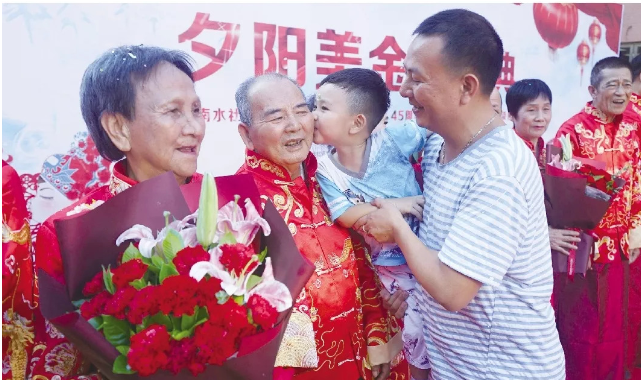 老人們雖然大多語(yǔ)言拘謹(jǐn),不少羞于表達(dá)愛(ài)意,但幾十年的風(fēng)雨同行,甘苦與共,相濡以沫,他們已用實(shí)際行動(dòng)踐行“執(zhí)子之手、與子偕老”的不變承諾。他們對(duì)婚姻的堅(jiān)守,彼此不離不棄,讓人為之動(dòng)容、深受感染,獲頒金婚證書(shū)。