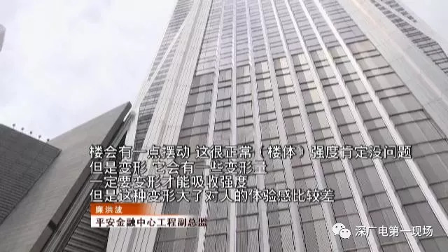 工程人員表示,平安金融中心抗風(fēng)設(shè)計(jì)能應(yīng)對(duì)平均風(fēng)速為60米/秒,陣風(fēng)風(fēng)速最高至80米/秒的臺(tái)風(fēng)。在此模擬情景下,塔頂擺幅單側(cè)計(jì)算值為67厘米。