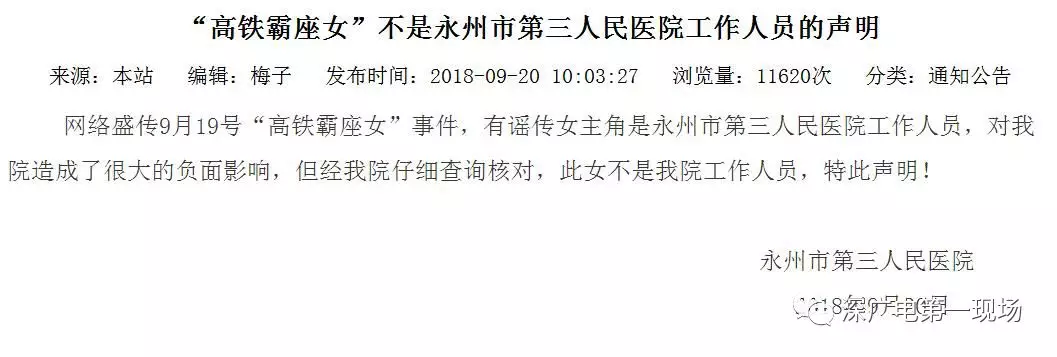 記者在永州市第三人民醫(yī)院官方網(wǎng)站看到,醫(yī)院已對(duì)此事發(fā)表了聲明通知,“謠傳女主角是永州市第三人民醫(yī)院工作人員,對(duì)我院造成了很大的負(fù)面影響,但經(jīng)我院仔細(xì)查詢核對(duì),此女不是我院工作人員”。