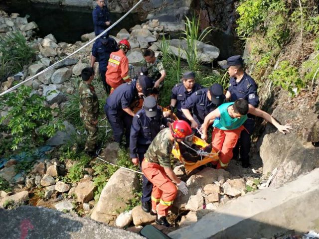 到現(xiàn)場(chǎng)后,民警了解發(fā)現(xiàn)該男子在爬山的過程中不小心踩到苔蘚摔倒受傷,當(dāng)場(chǎng)倒地不起,無法動(dòng)彈。情況緊急,四周山路陡峭,120急救人員短時(shí)間內(nèi)難以到達(dá)進(jìn)行救治。這時(shí),葉孟庭等民警當(dāng)機(jī)立斷,將同行救援隊(duì)員分成兩組,用擔(dān)架將傷者一步步接力抬下山。此處位于亂石山澗中,隊(duì)員只能齊心協(xié)力抬著擔(dān)架一點(diǎn)一點(diǎn)小心挪移,坡陡石滑,空氣悶濕,加之荊棘擋道,隊(duì)員們汗如雨下,整整花了2個(gè)多小時(shí)才將擔(dān)架安全抬到盤山公路懸崖邊,隊(duì)員們個(gè)個(gè)衣衫濕透,手腳上的擦劃痕跡清晰可見。