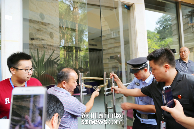 一樓大門已鎖,法院干警正嘗試打開(福田法院提供)